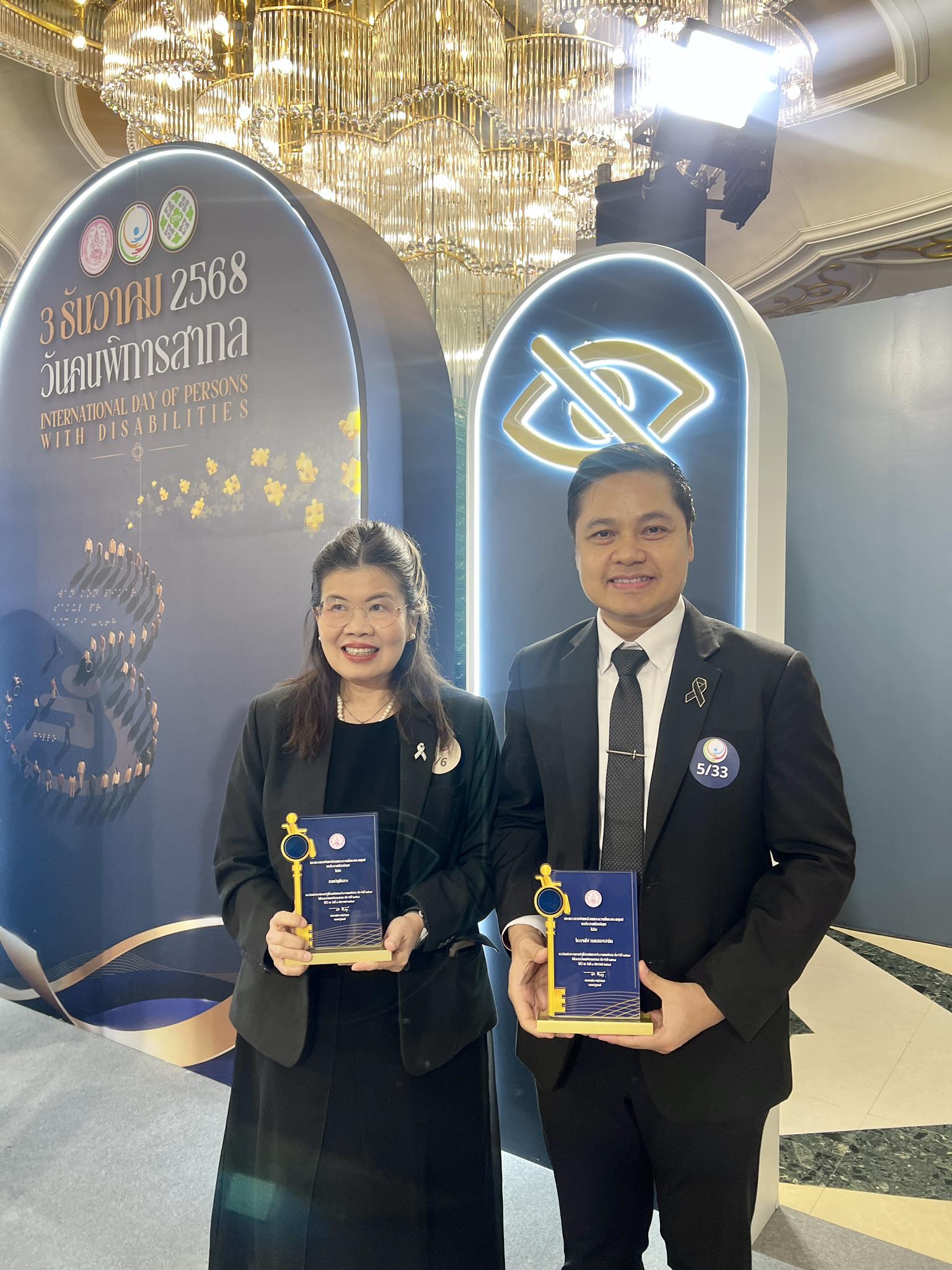 ในการนี้ นางสาวสนธยา บุณยภูษิต อธิบดีกรมส่งเสริมและพัฒนาคุณภาพชีวิตคนพิการ ให้เกียรติมอบโล่ประกาศเกียรติคุณรางวัลหน่วยงานภาครัฐที่ส่งเสริมการจ้างงานคนพิการ ประจำปี 2568 โดยมี นางสาววิลาวรรณ พยาน้อย ที่ปรึกษาด้านพัฒนาระบบการเงินการคลัง ผู้แทนกรมบัญชีกลาง (กรรมการโรงงานไพ่ กรมสรรพสามิต) รับมอบรางวัลฯ สาขาจ้างงานเกินกว่ากฎหมายกำหนด พร้อมด้วย นายกนิษฐ์ ศิริวัฒน์ รองผู้อำนวยการโรงงานไพ่ รับมอบรางวัลหน่วยงานภาครัฐที่ส่งเสริมการจ้างงานคนพิการ ประจำปี 2568